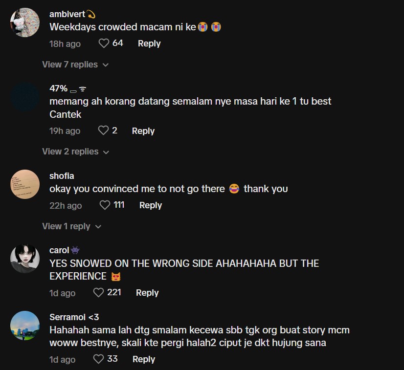 Menerusi video perkongsian @1rfcn itu, lelaki itu menunjukkan keadaan orang ramai yang bersesakan di kawasan itu mahu merasai pengalaman salji di Kuala Lumpur.