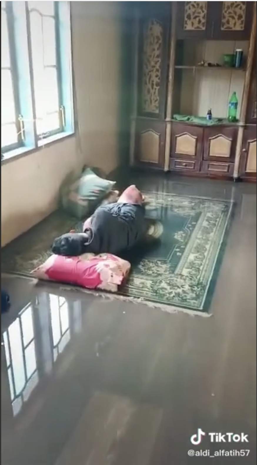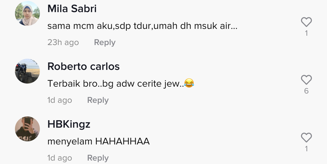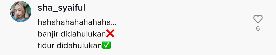 Tetapi, lain pula dengan video yang tular di TikTok ini apabila seorang lelaki menunjukkan perangai rakannya yang terlalu lena tidur walaupun rumah dimasuki air mencuri tumpuan ramai.