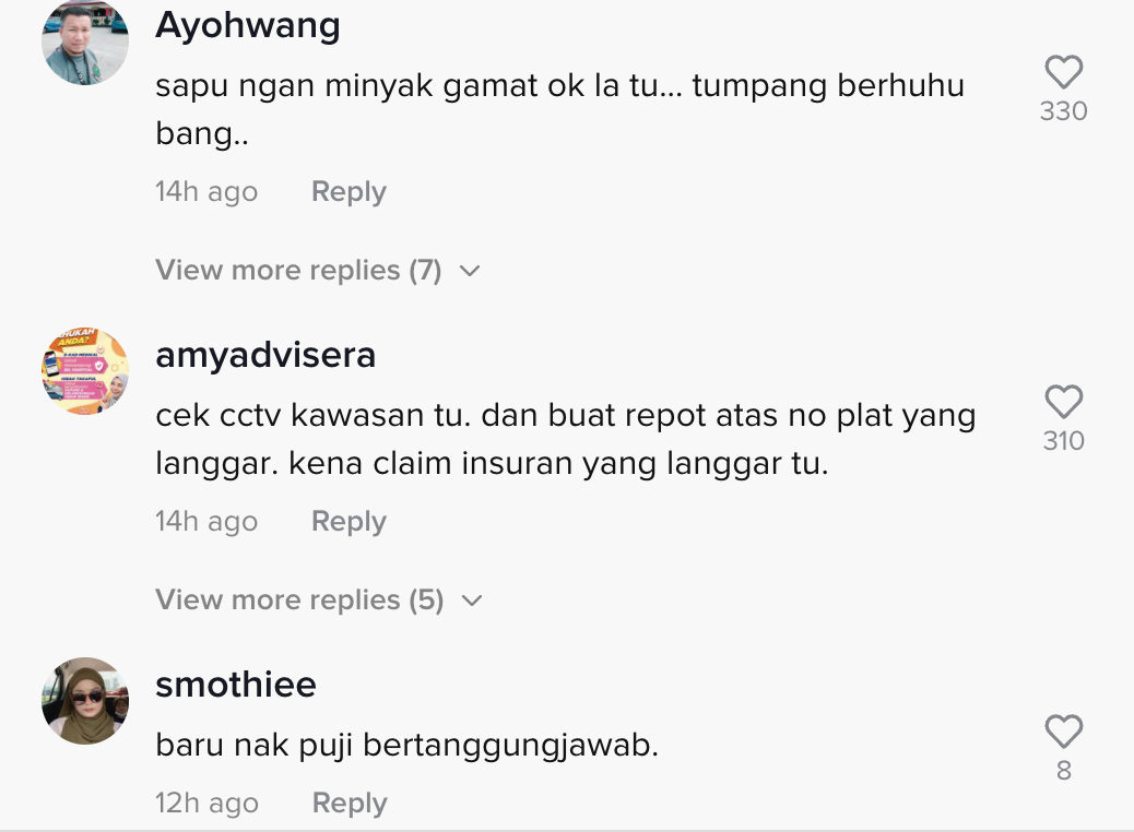 Malah, ada yang meluahkan rasa marah kepada orang itu kerana mengatakan itu hanya sedikit kesan langgar.