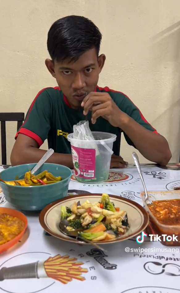Menerusi video yang dimuat naik oleh @swipersimusang, kelihatan seorang wanita sedang merakam menu berbuka puasanya sambil memberitahu nama-nama hidangan tersebut.