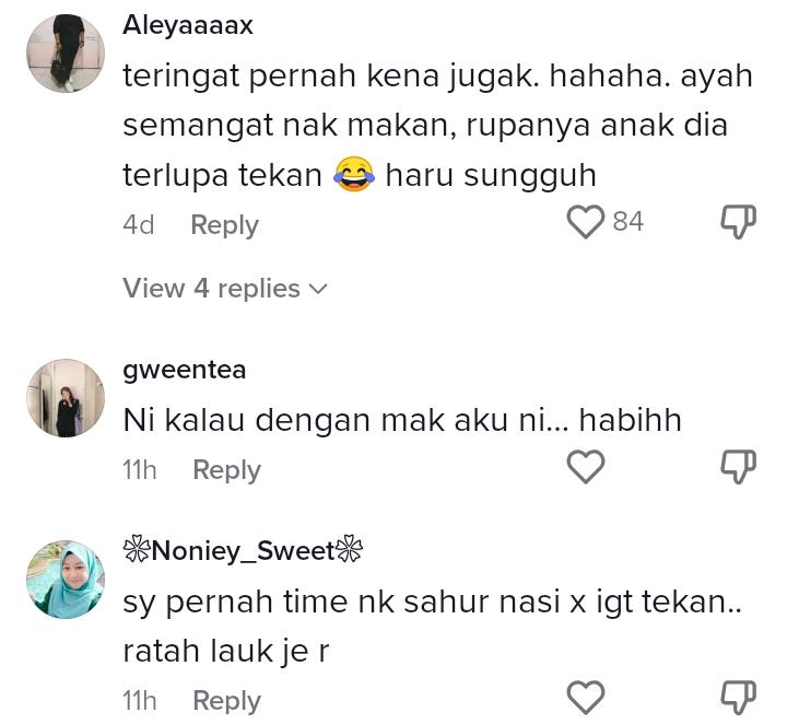 Susulan tularnya video itu yang kini mencecah sehingga 323K views, 21.8K likes dan 355 comments di TikTok, rata-rata netizen turut terhibur dengan gelagat suami isteri ini dan boleh relate dengan situasi tersebut. Ada juga yang berkongsi pengalaman mereka sendiri.
