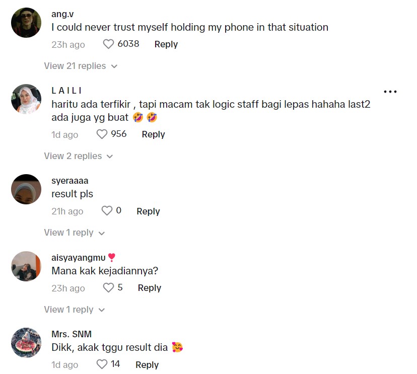 Susulan tularnya video tersebut di TikTok, ia telah meraih sehingga 977.7K views, 58.7K likes dan 1.8K shares.