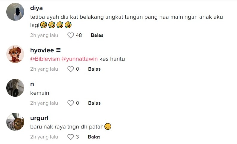 Berikut di bawah merupakan antara komen menarik daripada netizen di TikTok:
