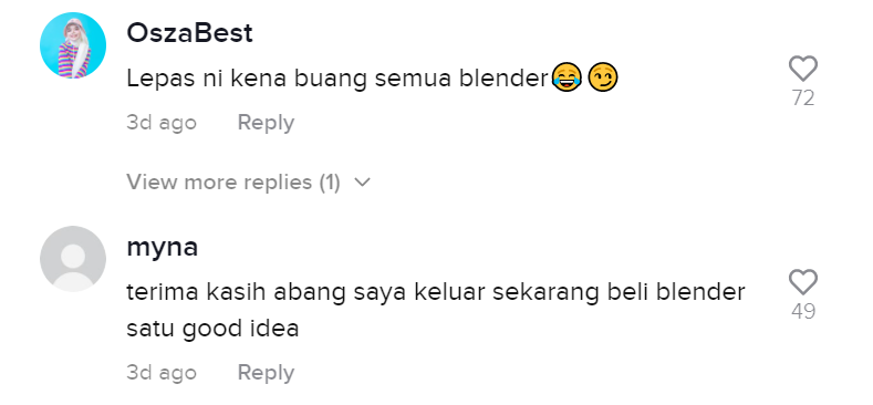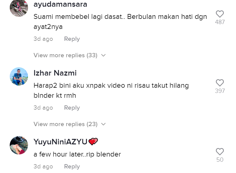 "Harap-harap bini aku tak nampak video ni, risau takut hilang blender kat rumah" – Netizen
