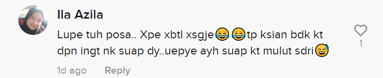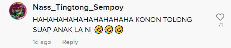 Dalam pada itu, tinjauan di ruangan komen mendapati rata-rata netizen turut terhibur melihat gelagat lelaki tersebut. Malah, ada juga yang berkongsi pengalaman sama mereka ketika menyuap anak untuk makan.