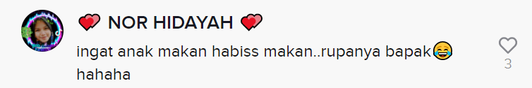 "Ingat anak makan habis, rupanya bapa hahaha" – Netizen