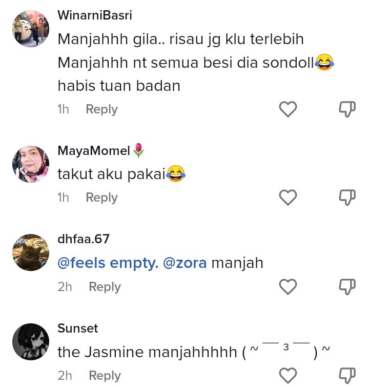 Dalam pada itu, tinjauan di ruangan komen mendapati rata-rata netizen turut terhibur dengan gelagat lelaki ini dalam mengiklankan tudungnya dan cara marketing nya. Ada juga yang suka caranya menyebut "manjaaah" yang disifatkan addicting.