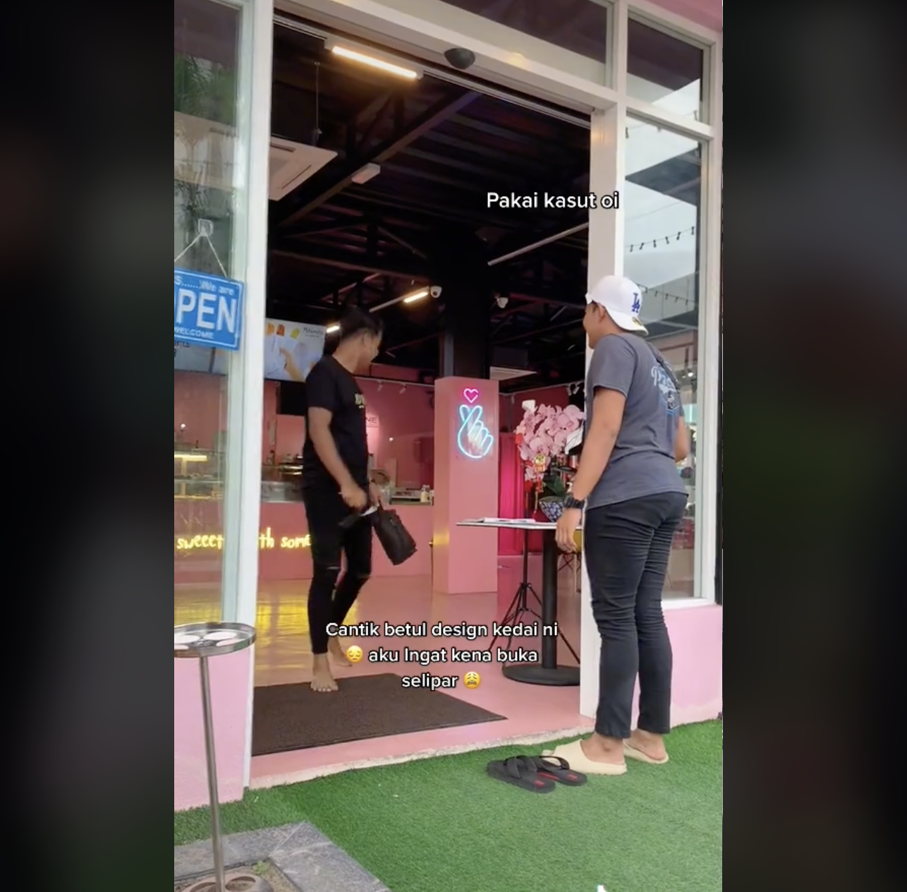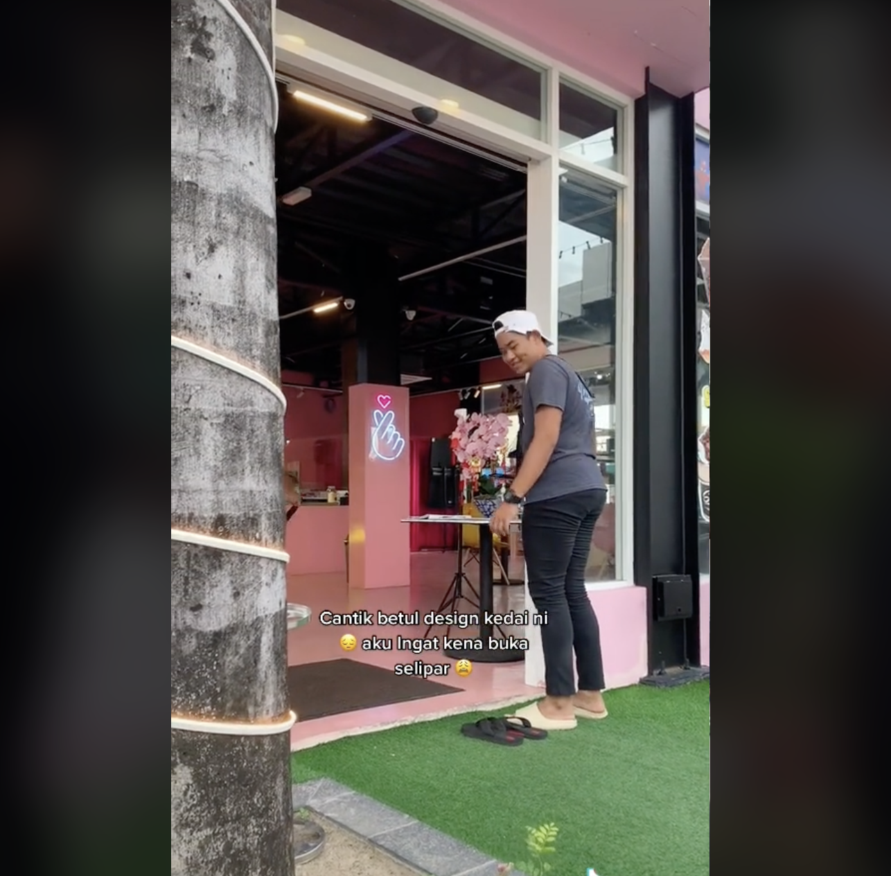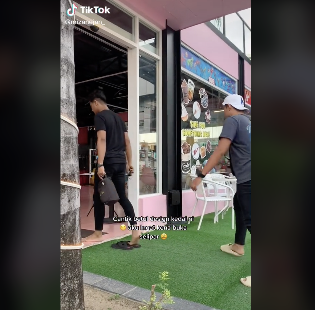 Oleh itu, tidak hairanlah apabila lelaki di dalam video @mizanejan_ ini tanpa berfikir panjang membuka kasut dan terus masuk ke sebuah kafe.