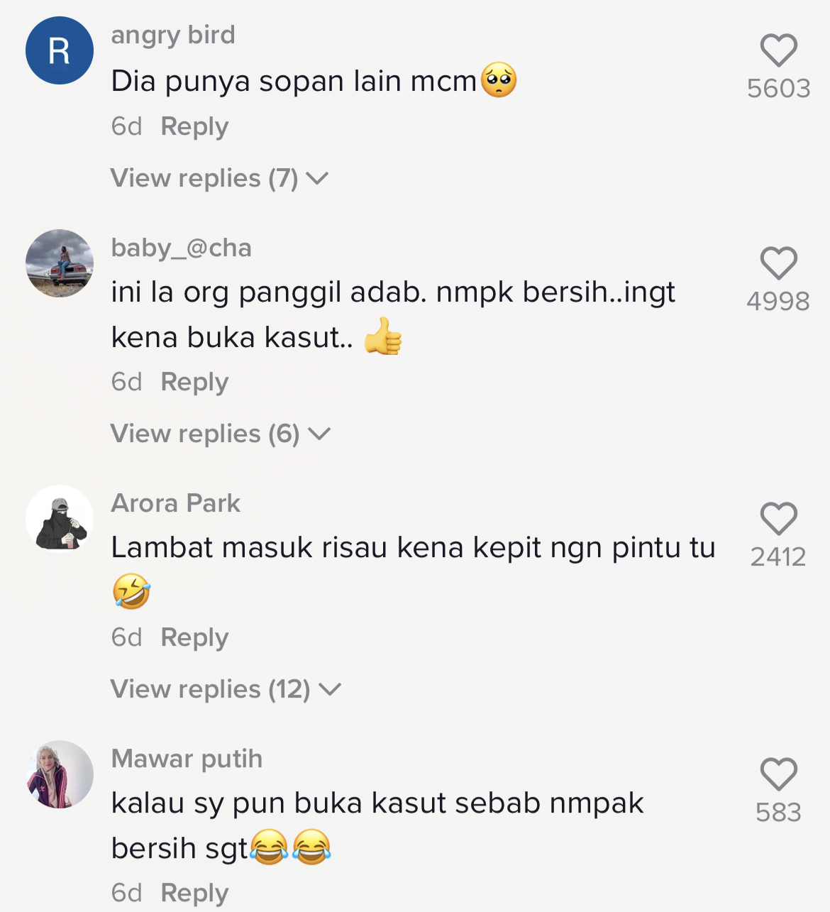 Kalau saya pun buka kasut sebab nampak bersih sangat – Netizen