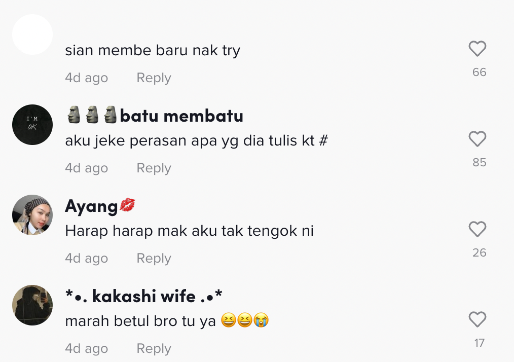 Berikut di bawah adalah antara komen menarik daripada netizen di TikTok: