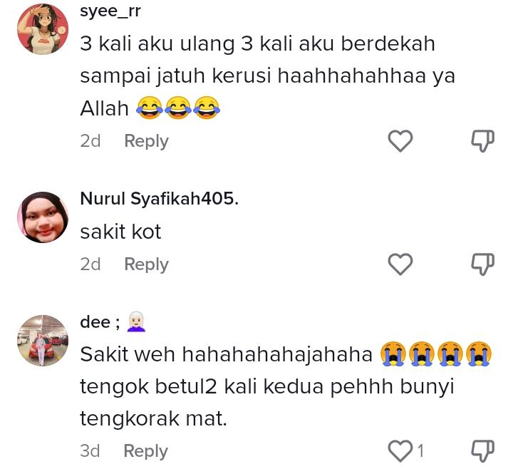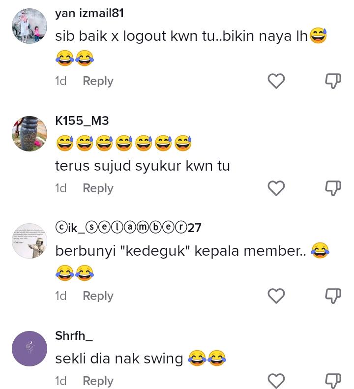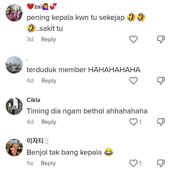 Dalam pada itu, tinjauan di ruangan komen mendapati rata-rata netizen turut terhibur dan terkejut kerana bunyi terkena rakannya agak kuat, menyebabkan ramai yang bersimpati atas keadaan lelaki berkenaan.