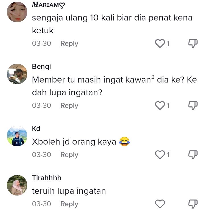 Berikut di bawah merupakan antara komen menarik daripada netizen di TikTok: