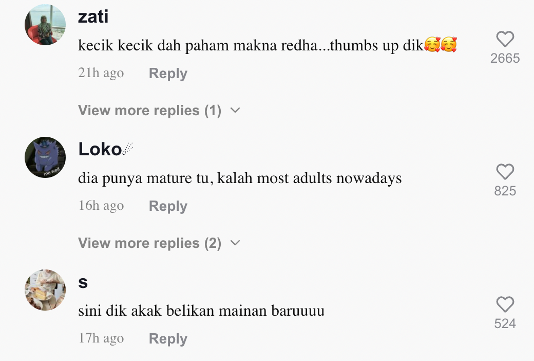 "Kecil-kecil dah faham makna redha, thumbs up dik" – Netizen