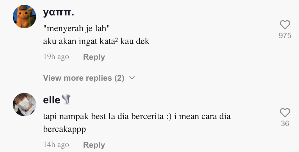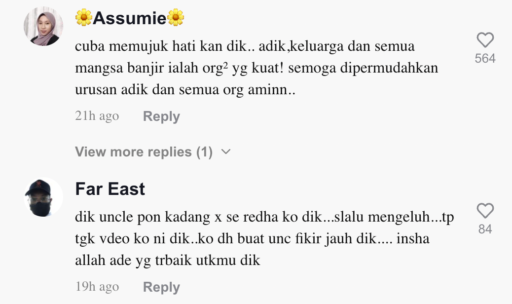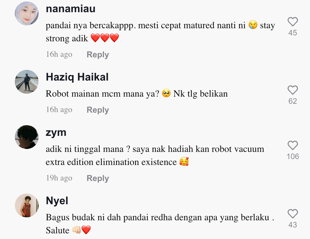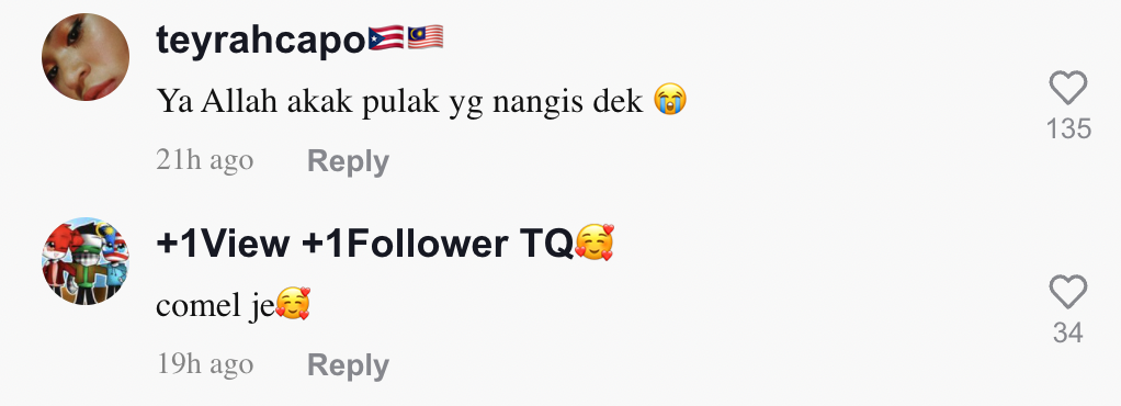 Berikut di bawah adalah antara komen daripada netizen di TikTok: