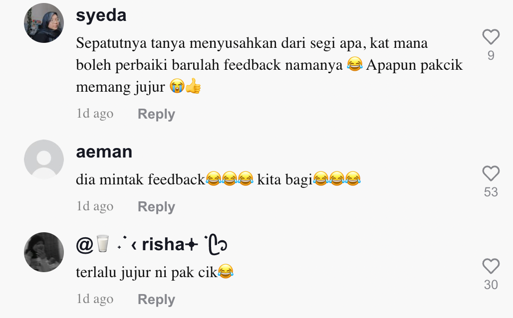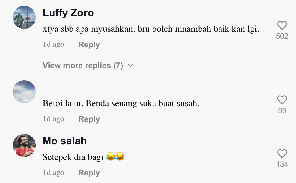 Berikut di bawah adalah antara komen menarik daripada netizen di TikTok: