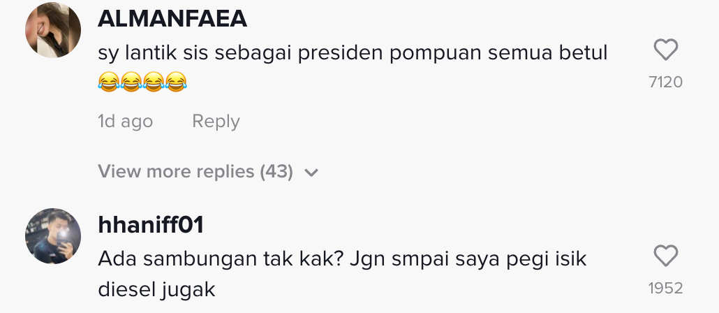 Berikut di bawah adalah antara komen daripada netizen di TikTok: