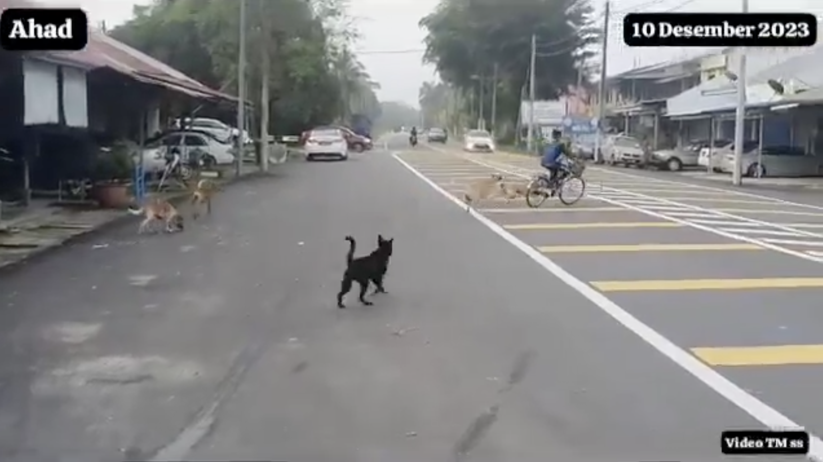 Mujur saja tiada sebarang kemalangan yang berlaku. Penduduk di situ mendakwa anjing liar itu berbahaya kepada pejalan kaki dan murid ke sekolah.