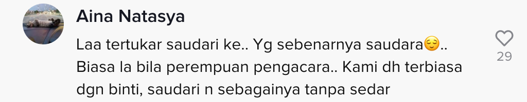Tak sedar tersasul panggil member lelaki saudari