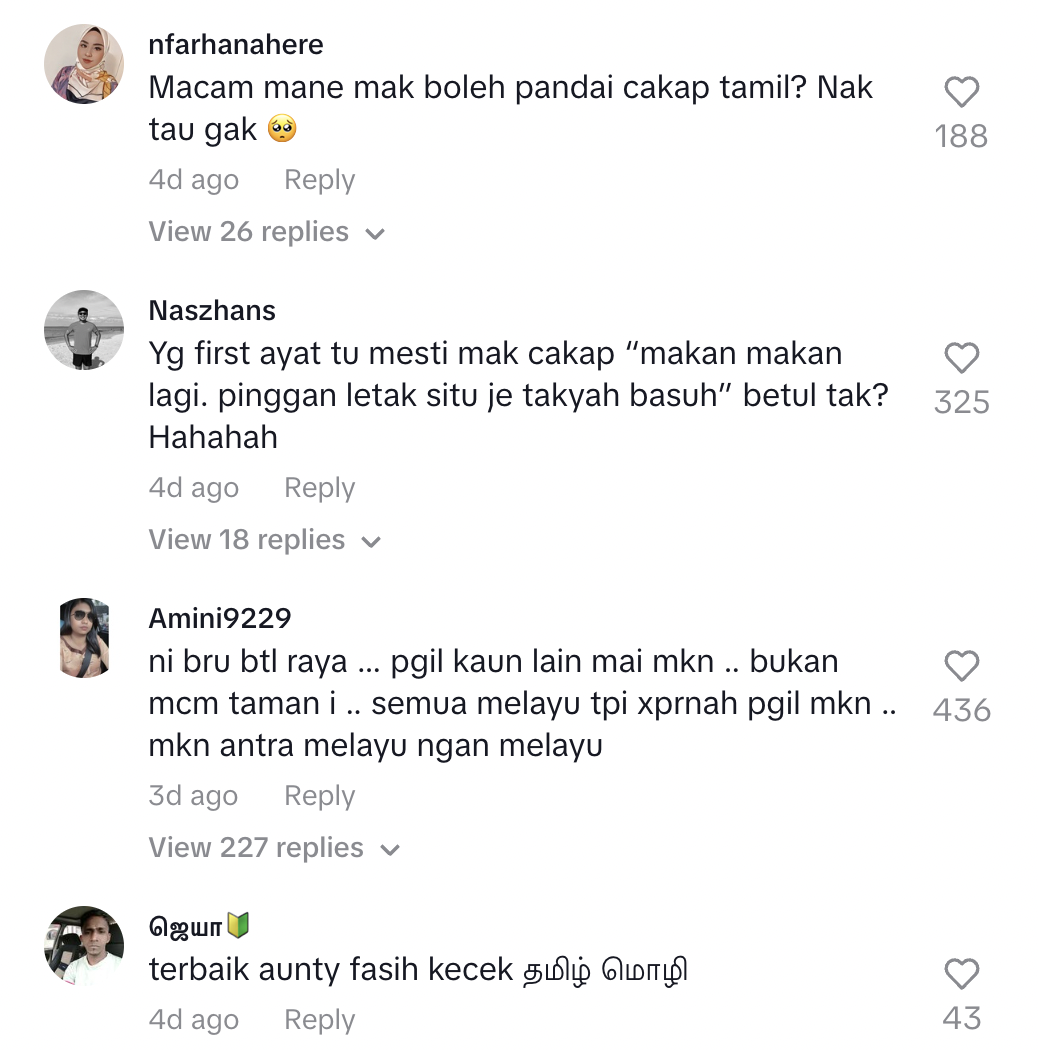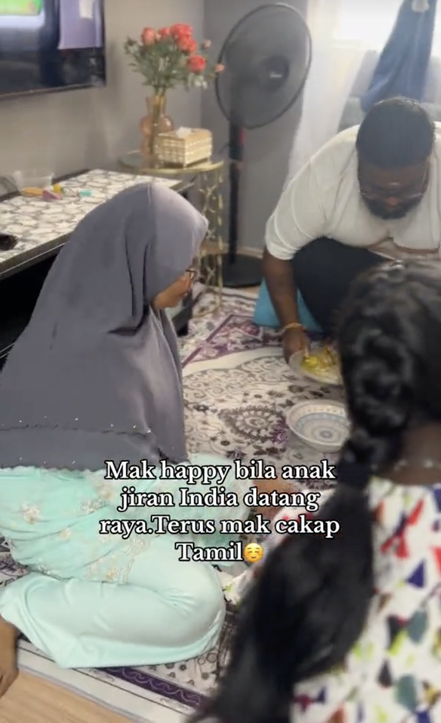 "Mak happy bila anak jiran India datang raya. Terus mak cakap Tamil," tulis anak wanita itu di TikTok.