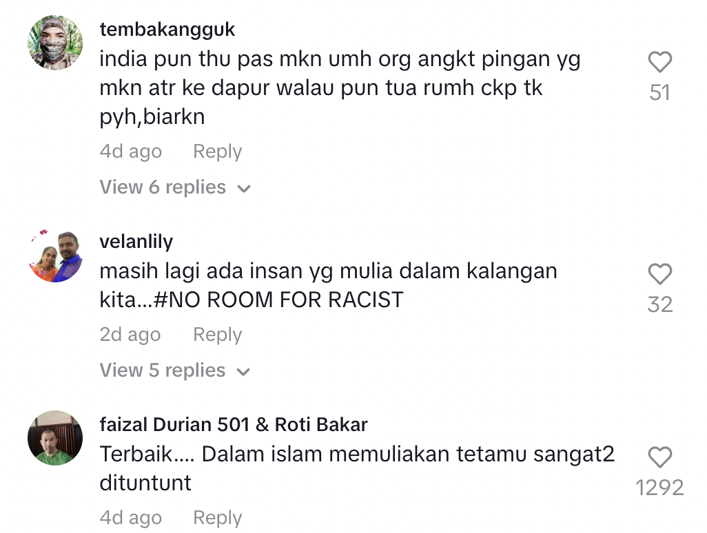"Terbaik. Dalam Islam memuliakan tetamu sangat-sangat dituntut" – Netizen