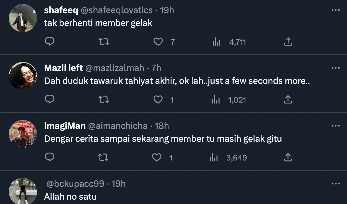 Dalam pada itu, tinjauan di ruangan komen mendapati rata-rata netizen turut terhibur dan memberikan pelbagai reaksi mereka.