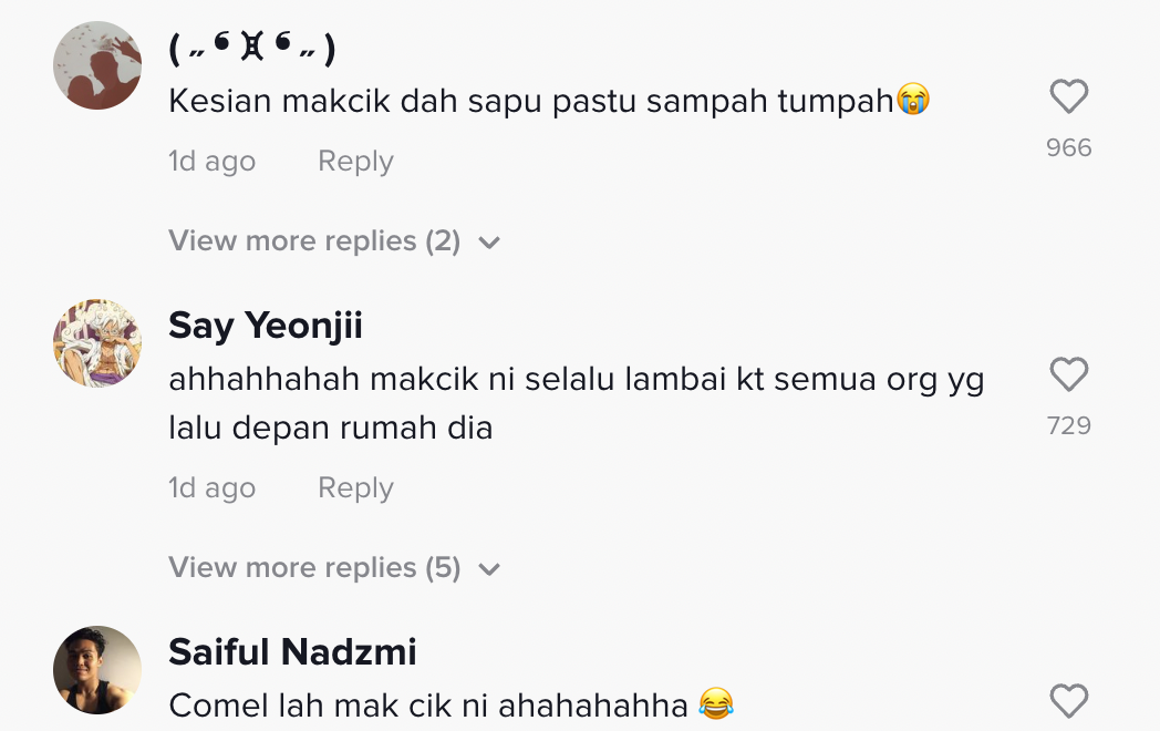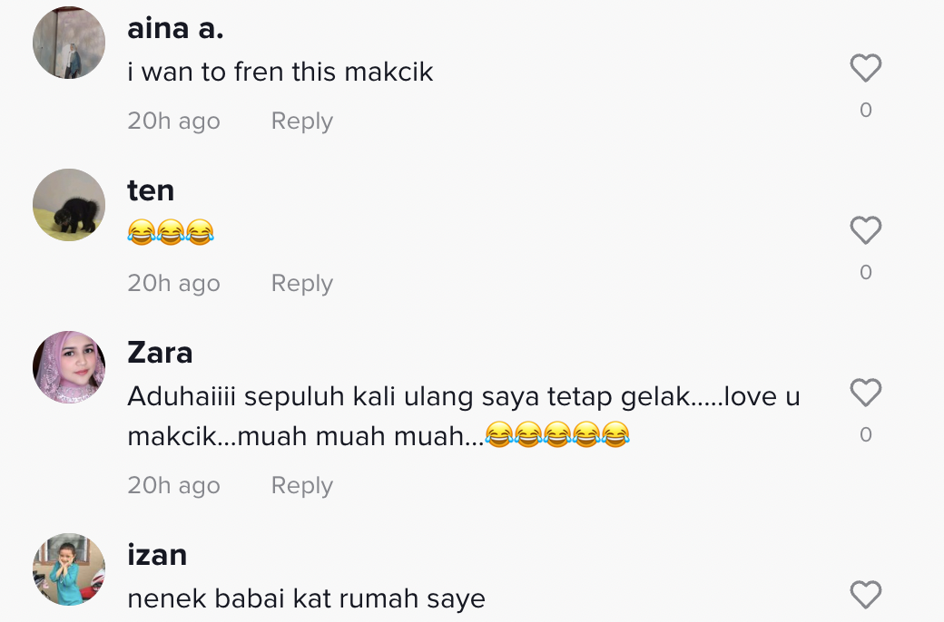Dalam pada itu, tinjauan di ruangan komen mendapati rata-rata netizen turut terhibur melihat gelagat mak cik berkenaan.