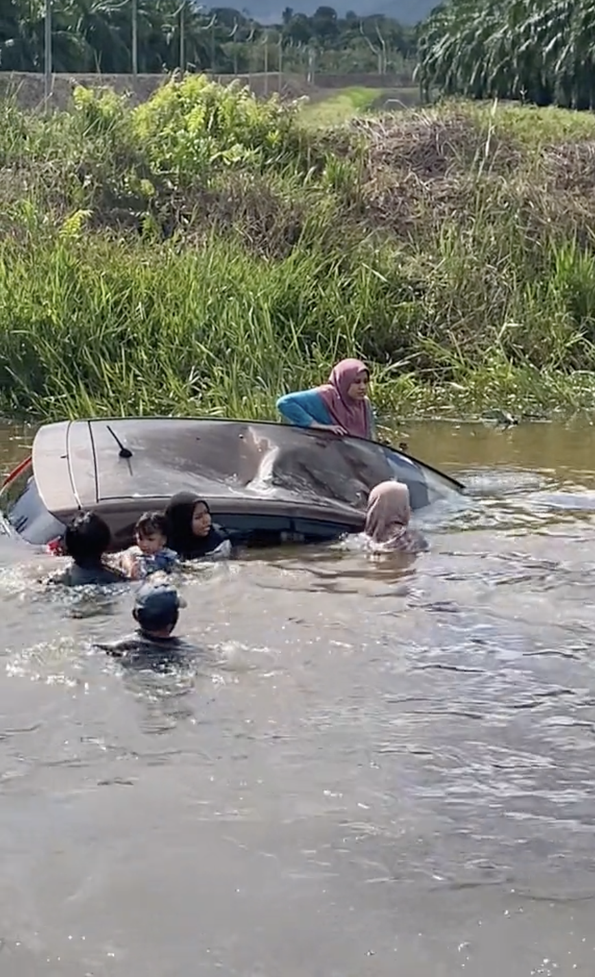 Selepas insiden itu berlaku, orang awam bertindak untuk terus menyelamatkan mereka untuk keluar daripada kereta terbabit sebelum ia mula tenggelam. Difahamkan, semua penumpang berada dalam keadaan selamat.