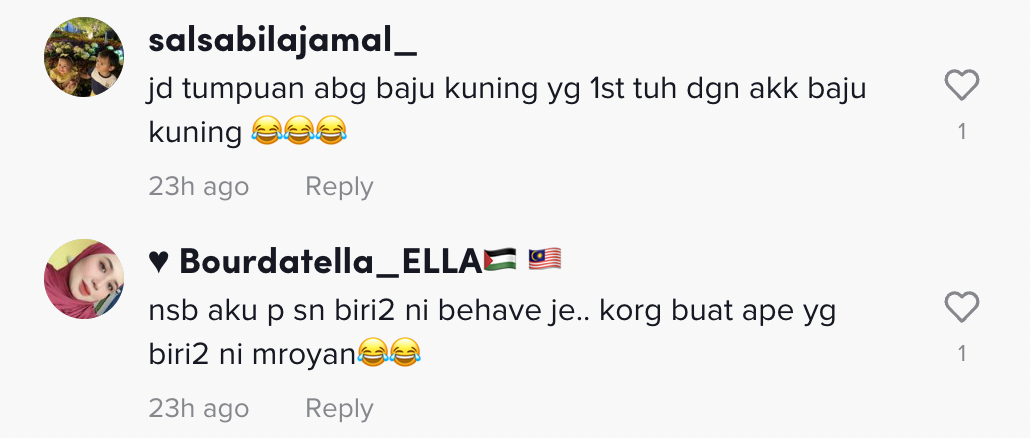 Dalam pada itu, tinjauan di ruangan komen mendapati rata-rata netizen ada yang terhibur melihat aksi tersebut. Malah, ada juga memberikan andaian mereka sendiri.