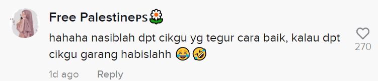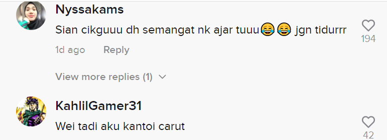 Dalam pada itu, tinjauan di ruangan komen mendapati rata-rata netizen turut merasa terhibur melihat insiden terbabit. Malah, ramai yang memuji lecturer itu kerana tegurnya secara baik.