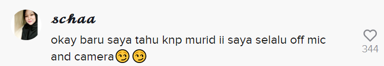 Namun, apa yang lebih menghiburkan adalah sebaik saja dia memberitahu perkara berkenaan, lecturernya terus memberikan reaksi dengan memberitahu agar dia menutup mikrofon dulu sebelum bercakap.
