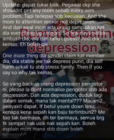 Kesian dekat orang yang betul-betul ada masalah kesihatan mental nanti tak diambil serius pula.