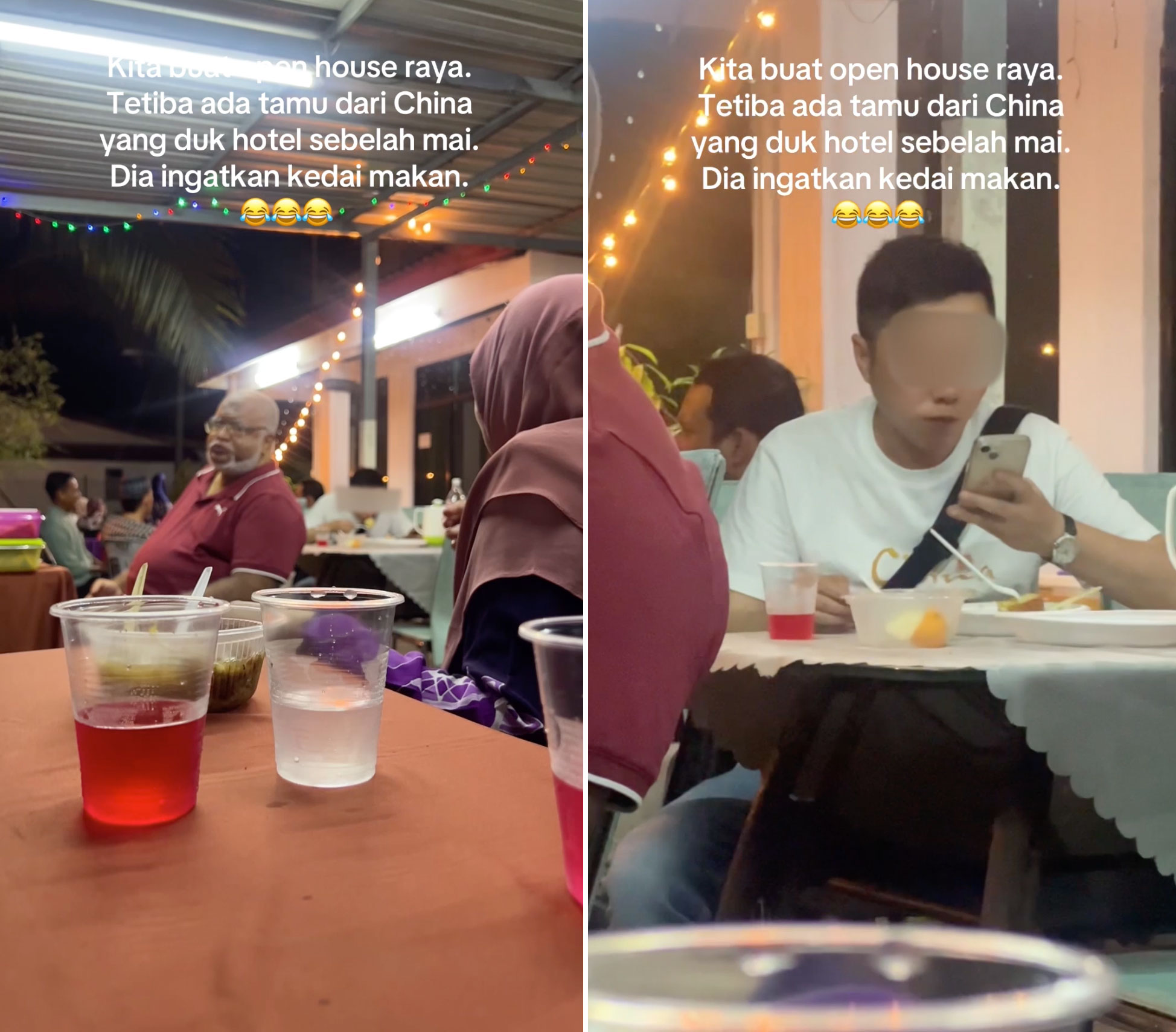 Menerusi rakaman video yang telah dimuat naik di TikTok itu, lelaki China itu dilihat sedang berselera menikmati juadah raya sambil bermain telefon bimbit.