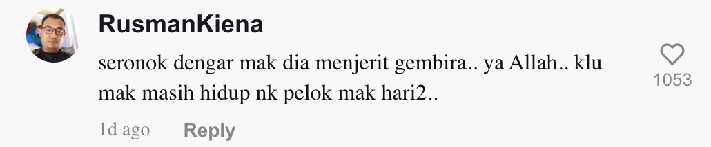 "Seronok dengar mak dia menjerit gembira" – Netizen