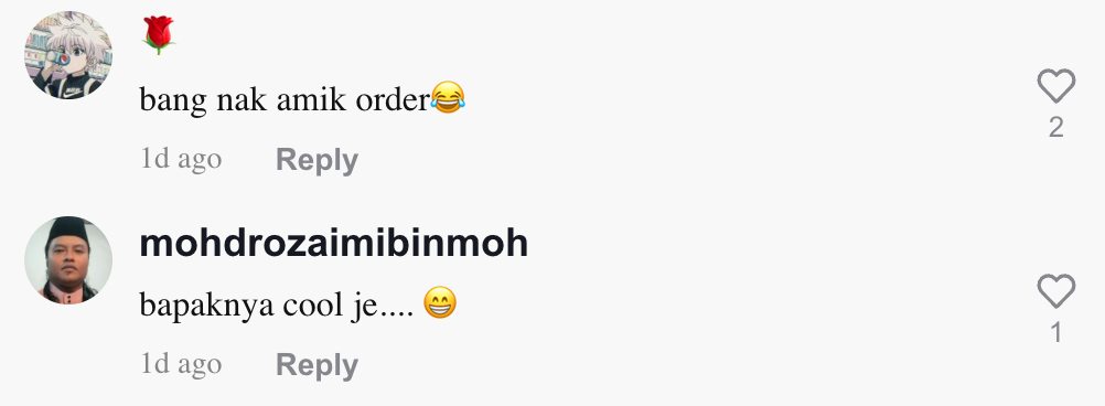Berikut di bawah adalah antara komen menarik daripada netizen di TikTok: