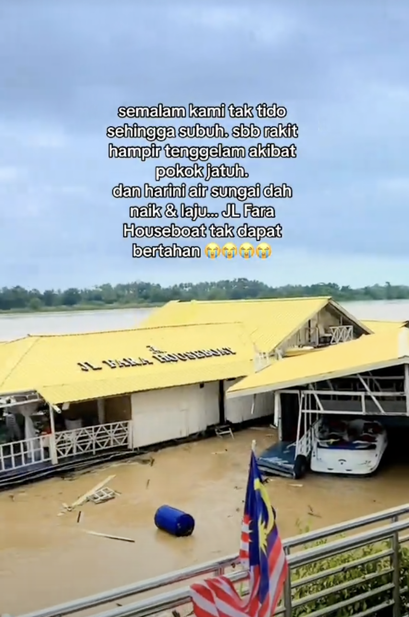 [VIDEO] Pemilik Tak Dapat Tahan Sebak, Restoran Terapung Dihanyutkan 5KM Arus Deras