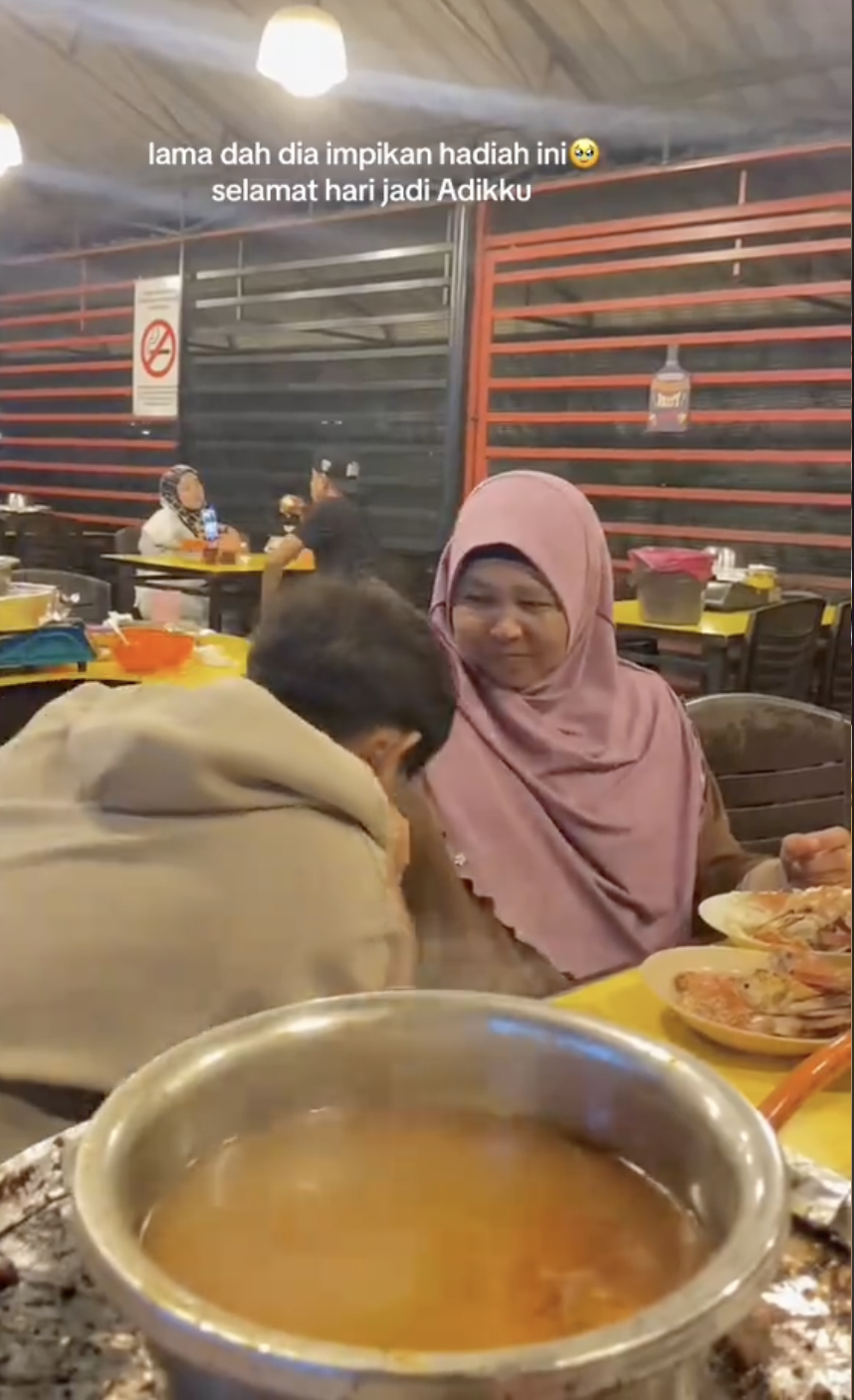 Menerusi video di akaun TikTok @massmurnie, kelihatan sebuah keluarga sedang makan di sebuah restoran steamboat untuk menyambut hari jadi ahli keluarga mereka.