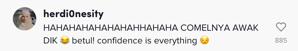 "Hahaha comelnya awak dik. Betul! confidence is everything" – Netizen