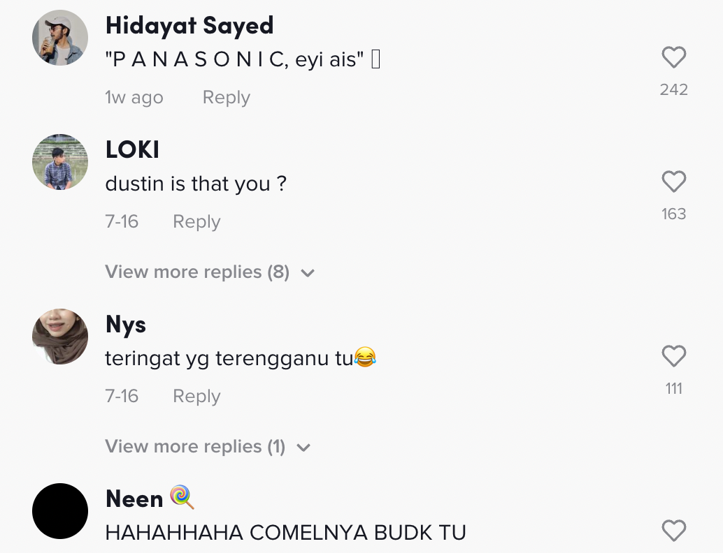 Berikut di bawah adalah antara komen daripada netizen di TikTok: