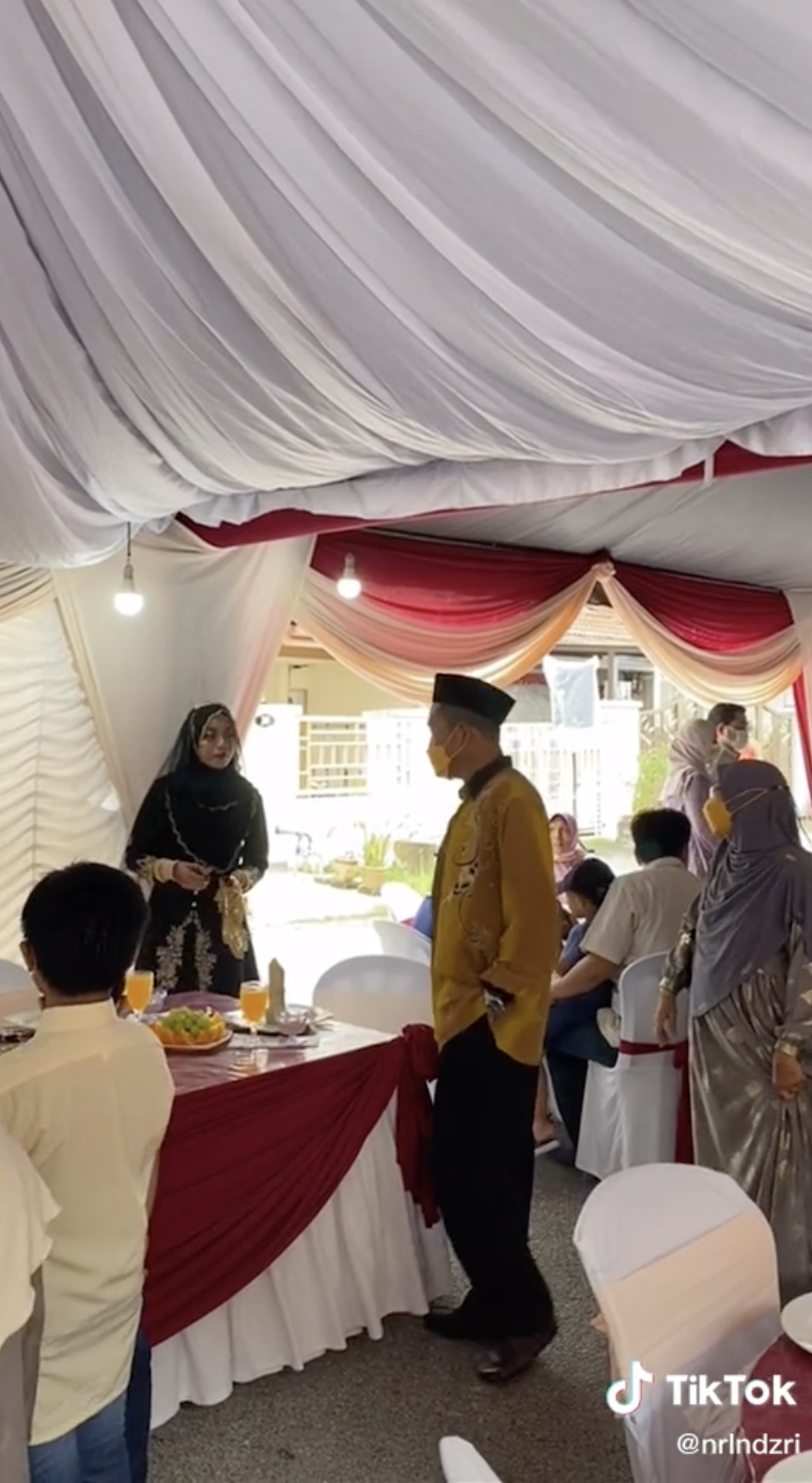 Namun, apa yang lebih mencuri tumpuan adalah dia hanya berseorangan tanpa pasangannya disebelah. Difahamkan, pengantin lelaki terpaksa dikuarantin beberapa hari sebelum majlis mereka.