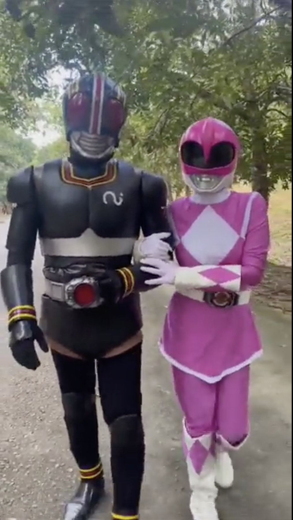 Pengantin lelaki menjadi masked rider, manakala pengantin perempuan pula menjadi power rangers.
