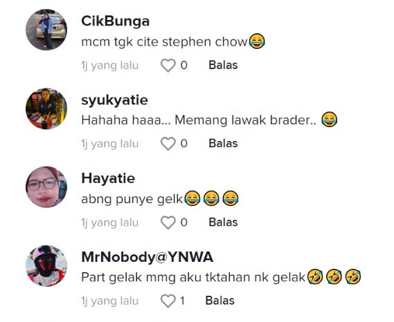 Dalam pada itu, tinjauan di ruangan komen mendapati rata-rata netizen turut terhibur melihat gelagat spontan lelaki tersebut dan memberi komen yang mencuit hati mengenainya.