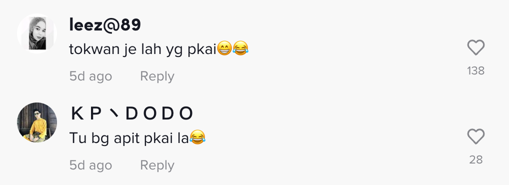 Sementara itu, tinjauan di ruangan komen mendapati rata-rata netizen turut terhibur melihat video itu.