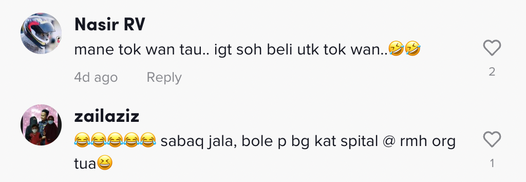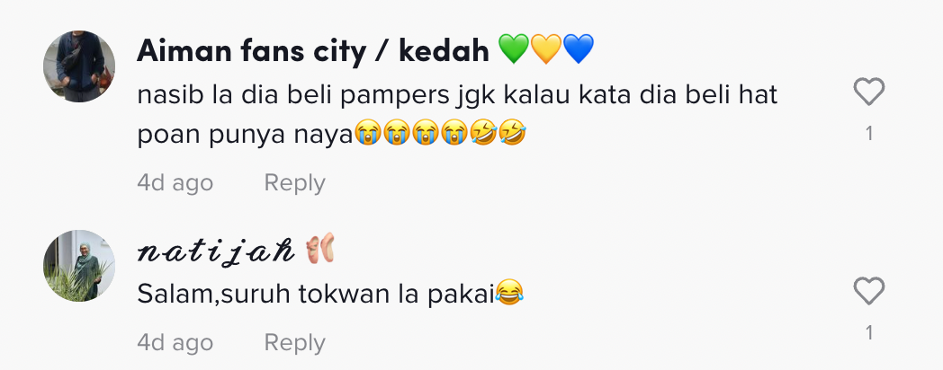 Namun, lain pula yang terjadi dengan video ini apabila seorang wanita berkongsi kisah lucu apabila dia menyuruh Tok Wannya membelikan lampin bayi telah mengundang tawa ramai.