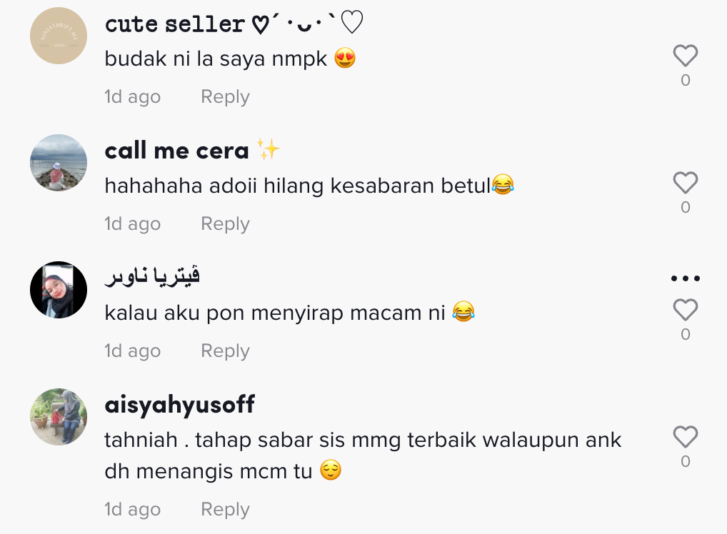 Sementara itu, tinjauan di ruangan komen mendapati rata-rata netizen turut merasa terhibur melihat gelagat kanak-kanak itu. Malah, ada juga yang berasa kasihan melihatnya.