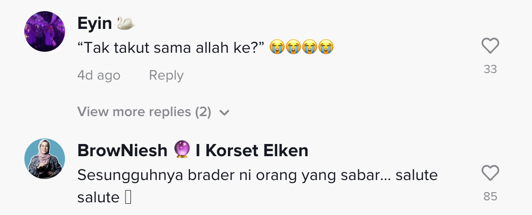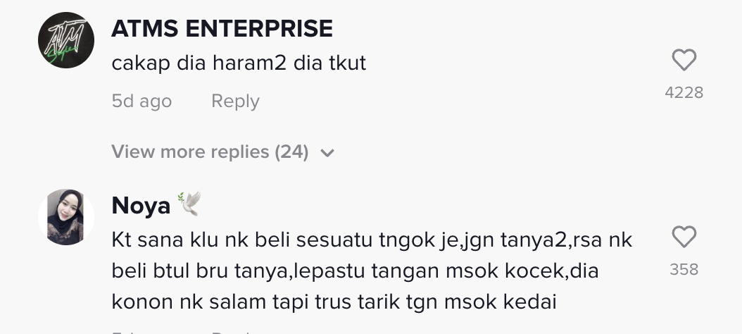 Berikut di bawah adalah antara komen daripada netizen di TikTok: