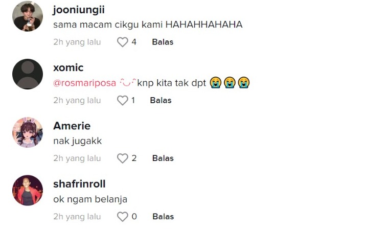 Berikut di bawah merupakan antara komen menarik daripada netizen di TikTok: