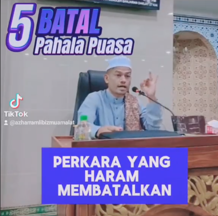 Baru-baru ini, tular sebuah video di TikTok yang memaparkan seorang pendakwah bebas yang dikenali sebagai Ustaz Azhar Ramli yang berkongsi beberapa perkara menyebabkan pahala puasa berkurangan kemungkinan boleh batal.