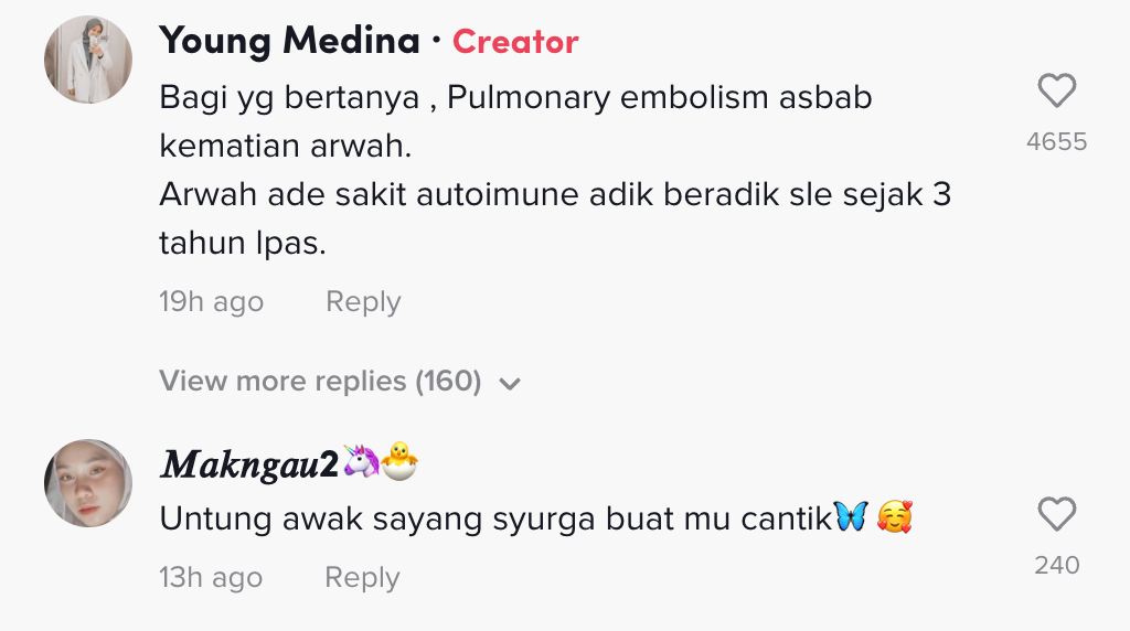 Berikut di bawah adalah antara komen daripada netizen di TikTok: