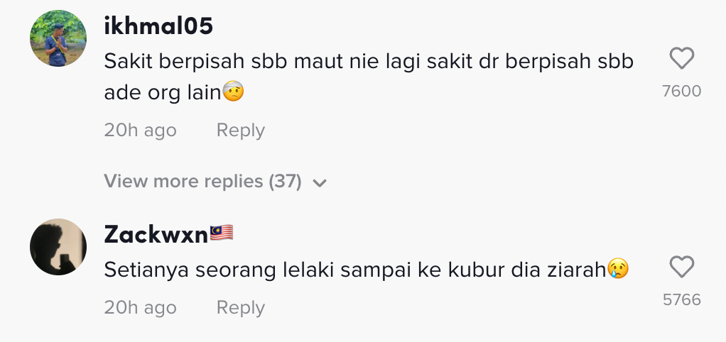 "Sakit berpisah sebab maut ni lagi sakit dari berpisah sebab ada orang lain" – Netizen