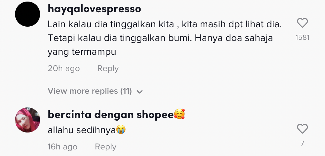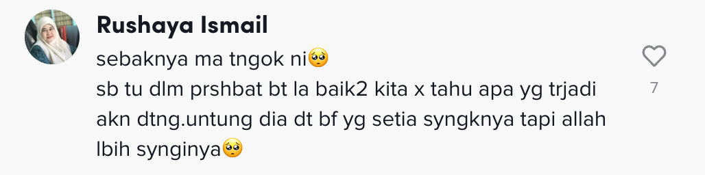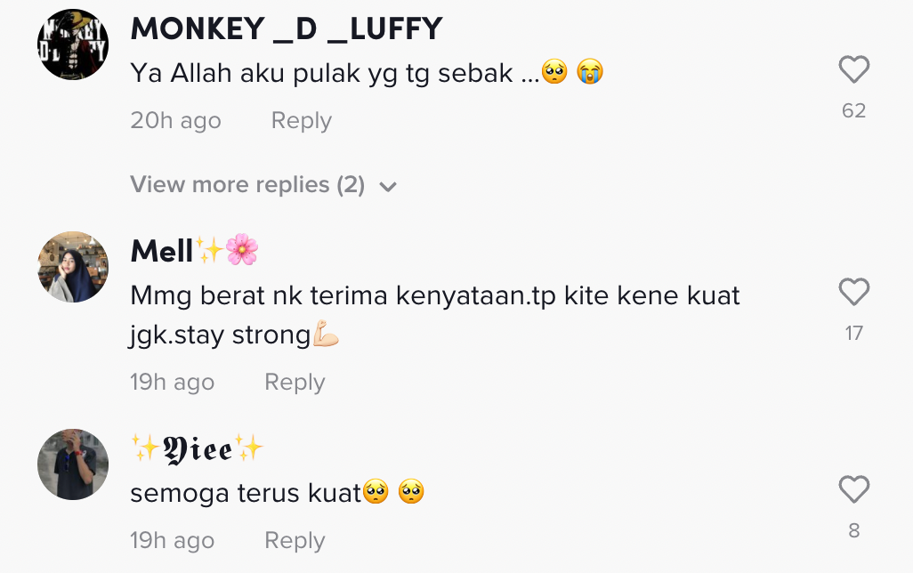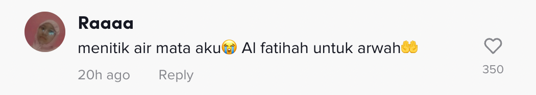 Dalam pada itu, tinjauan di ruangan komen mendapati rata-rata netizen turut meluahkan rasa sebak mereka selepas melihat video tersebut.